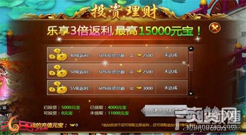 2、投资理财储存,充值1000元宝就好(一样是送的系统元宝)