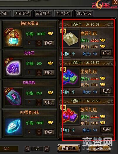2686《战天》为各位玩家准备了高价值的折扣礼包,里面包含有前期各个系统的提升材料,这个投入是必须做的,打个比方,相当于用100元宝买了价值1000元宝的东西,而且每天只能买一个,过了开服活动等你再想买,可就后悔莫及了。