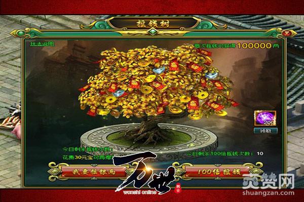 相信不少小伙伴都曾幻想自己能够拥有一棵摇钱树,自己不用付出什么努力,就可轻松获得大量财富。虽然这种想法在现实生活中不可取,但是在大黑《万世》中,你的梦想却能得以成真。金碧辉煌的摇钱树,只要摇一摇,就可让你免费获得铜钱收益,丰厚财富瞬间就可收入你的囊中。