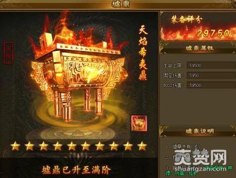 可以提供大量生命加成、固定伤害、boss伤害属性,墟鼎共有十阶,升级墟鼎需要消耗大量银两。