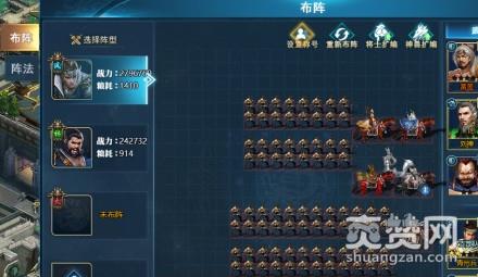 拖拽右侧列表中的武将士兵到左侧布阵区域即可完成上阵。