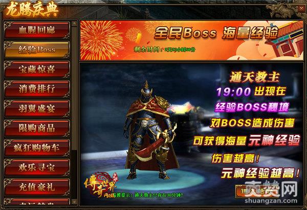 活动期间,每天将在BOSS秘境中刷新BOSS,玩家可前往进行挑战。另外,玩家对BOSS造成的伤害将转换成元神经验,还可使用攻击药水,暴击药水来获得更高的伤害,更多的经验。