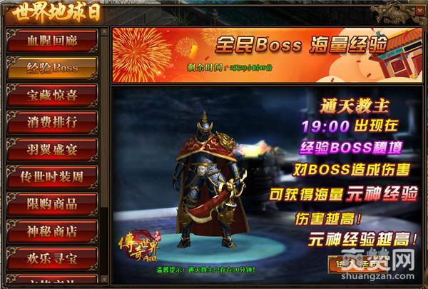 活动期间,每天将在BOSS秘境中刷新BOSS,玩家可前往进行挑战。另外,玩家对BOSS造成的伤害将转换成元神经验,还可使用攻击药水,暴击药水来获得更高的伤害,更多的经验。