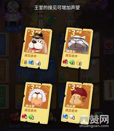例如:当您合成的红宝石配方牌和绿宝石配方牌分别累计4张时,就能立即得到“咩法官”的接见,立刻获得3声望值。