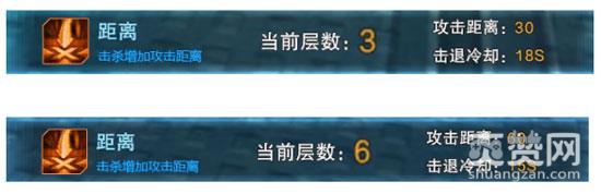 选择“距离”技能叠加六层,此时正使用拾取的影袭自带的技能。