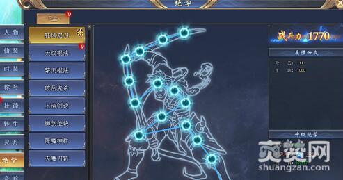 现流传下来的凡品绝学就有狂风双刀、天纹棍法、擎天棍法、破岳鬼杀、上清剑诀、御剑圣决、降魔神杵和灭魔刀斩等等,还有珍品、仙品等更高级的绝学。消耗真气升级绝学,获得属性加成。当上一级绝学升满级时,便可升级更高等级的绝学。