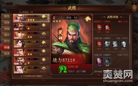 奇缘所对应的属性是根据该条奇缘需要收集的武将品质、数量相关的,需要武将的品质越高,并且需要的数量也越多,那么奇缘的属性就越好。义士对应1条奇缘,英才2条奇缘,名将3条奇缘,功臣4条奇缘,元勋5条奇缘。