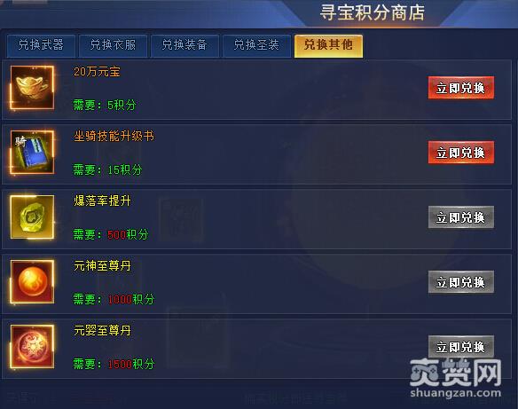 寻宝获得的寻宝积分可以在寻宝进服商店进行兑换装备和道具。兑换武器、衣服、装备、圣装这个寻宝积分足够的玩家可以进行兑换,普通的玩家的话建议存折积分用在兑换其他材料。