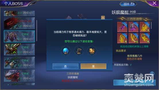空有等级没有装备怎么行?在挑战完经验副本后,让我们来看看“BOSS挑战”功能。在BOSS挑战中玩家可以单人挑战自己的个人boss,也可以与全服玩家共同协作来击杀多人BOSS,他们的奖励都是同样的丰厚!BOSS挑战中的关卡将随着玩家等级的提升来逐步解锁,这样的好处是玩家永远能找到最适合自己当前等级的装备。同时在BOSS下方也会标注出挑战这个BOSS的推荐魂力,如果玩家魂力低于推荐魂力时,建议玩家可以通过强化魂骨以及强化伙伴等方式,来提升自己的魂力值,从而达到挑战标准。