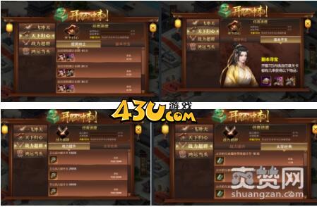 开服冲刺,分为一飞冲天(等级提升,平步青云)、天下归心(招贤纳士,副本夺宝)、战力超群(战力提升,太学经典)以及鸿运当头(幸运转盘,珠光宝气)。