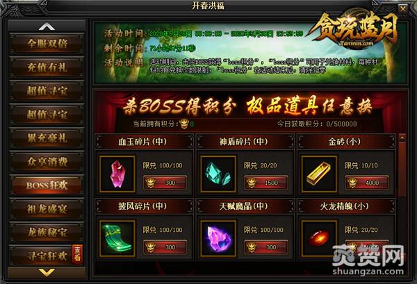 活动期间内,击杀BOSS获得“boss积分”,“boss积分”可用于兑换材料,每种材料均有兑换次数限制,“boss积分”在活动结束后,清除归零。