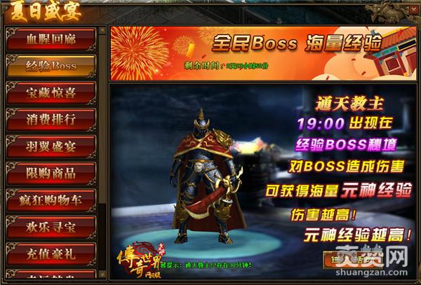 活动期间,每天19:00将在BOSS秘境中刷新BOSS,玩家可前往进行挑战,玩家对BOSS造成的伤害,将在活动结束后转换成元神经验并发放。温馨提示:可使用攻击药水,暴击药水的药品来获得更高的伤害,更多的经验哦~