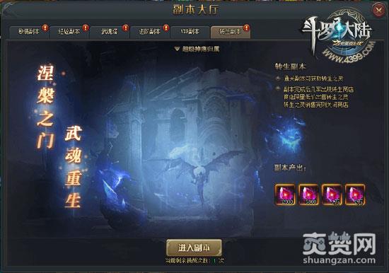 《4399斗罗大陆》转生是在人物到达55级之后才会开启的系统,可以说是《4399斗罗大陆》最重要的系统。转生的次数直接的限制了玩家角色所能佩戴的装备等阶、所能去的地图、所能挑战的BOSS、所能闯的副本…… 转生带来的属性的收益不是单纯的几十几百几千点的属性提升,而是以百分比来计算的,1转就能获得全属性提升10%的效果。 转生界面位于角色系统中上往下排在第二位,每一转都会解锁对应的转生装备和对应转生等级的BOSS,转生所消耗的资源只有转生之灵这一项,只要等级达到要求、并且获得足够的转生之灵,就能升级成功。 通过界面下方显示的预览就能够看到下一阶段所解锁的项目,把鼠标移动到转生按钮上也能看到转生后会获得的具体加成比例是多少。 在满足条件之后点击转生、扣除相应等级和转生之灵后就会转生成功,将会显示转生次数、转生总战斗力加成以及属性的加成百分比。 转生之灵的获取只有通过转生副本、每日充值、活动以及转生界面的“兑换转生之灵”。 转生副本很简单的、进去就是把怪物击杀后就能完成。 在通关转生副本之后,可以选择: 1.免费获取1倍奖励:3000转生之灵 2.花费100绑元获得2倍奖励:6000转生之灵 3.花费100元宝获得3倍奖励:9000转生之灵(限定VIP2以上) 4.花费200元宝获得5倍奖励:15000转生之灵(限定VIP5以上) 在转生副本之后,会有概率触发转生商店。转生商店开启时间为6小时,转生商店内能够以低廉的价格使用魂币以及元宝购买转生之灵: 1.消耗200W魂币购买2000转生之灵 2.消耗1元宝购买5000转生之灵 3.消耗20元宝购买2W转生之灵 4.消耗50元宝购买2W转生之灵 5.消耗100元宝购买3W转生之灵 兑换转生之灵的位置是在属性加成列表和转生按钮的中间,它的作用是牺牲等级来获取转生之灵,扣除的等级越高,获得的转生之灵数量也是不一样的: 1.消耗1000W魂币获得3W转生之灵 2.消耗150绑元获得3W转生之灵 3.消耗60元宝获得4W转生之灵 具体的兑换数值是不一样的,根据人物等级来判断的。 《4399斗罗大陆》是一款2D的MMOARPG游戏,保持了异世界的神话风格,深度还原了唐家三少小说中所构建的武魂世界,玩家将与唐三、小舞等史莱克七怪一起,合体施展强大的武魂融合技,挑战神级BOSS,成就巅峰斗罗,建立宗门,成就千年霸业! 4399游戏吧是4399游戏推出的专业的中文休闲游戏社区。不仅网罗了最酷炫最好玩的精品游戏,更集合了最新鲜最缤纷的相册广场,结合最多元最丰富的群组互动。《生死狙击》、《皮卡堂过家家》、《天空之舞》、《美食大战老鼠》、《飘渺西游》、《航海王OL》、《葫芦娃》、《TOUCH热舞》、《水煮三国》、《核金弹头》、《枪魂》、《小小突击队》、《斗罗大陆》、《火线精英》、《完美漂移》……更多精品游戏,请锁定4399游戏吧。