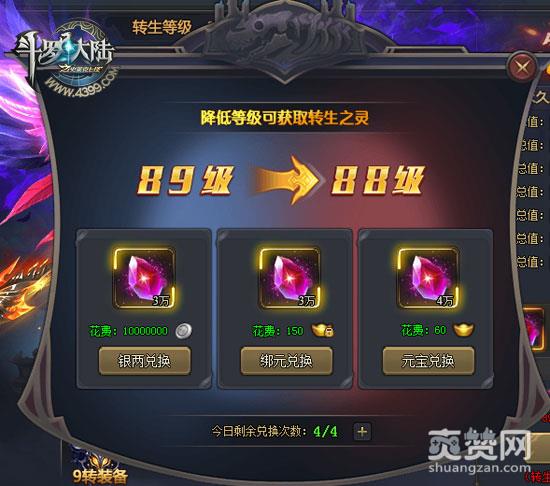 兑换转生之灵的位置是在属性加成列表和转生按钮的中间,它的作用是牺牲等级来获取转生之灵,扣除的等级越高,获得的转生之灵数量也是不一样的: