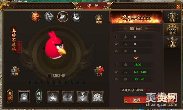除此之外,“真的不辣鸡”、“啸天神犬”守护也需要在跨服战场BOSS中有一定爆出完整的“不辣鸡精魄”和“啸天神犬精魄”才能激活。