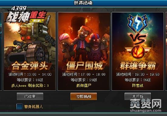 “僵尸围城”的活动是玩家声望和金币的主要来源,记得每天都参加哦!快来《4399枪魂》拯救末日危机吧!