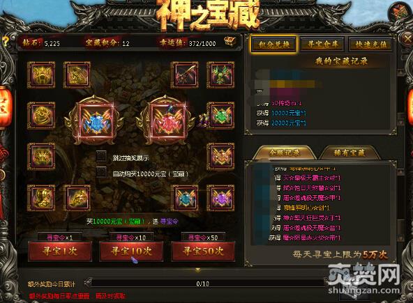 另外你每次抽奖都会获得1点寻宝积分和寻宝任务经验,寻宝积分可以进行低品阶物品的升级和物品兑换,建议玩家以兑换物品为主,物品装备还是比较容易获得的,没有必要浪费大量积分去兑换。