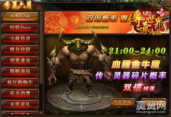 活动期间,玩家可以前往“多人副本-血腥回廊”,在特定时间内击败血腥金牛魔,就可以获得“传世灵器碎片”,并且碎片的掉落概率翻倍哦!有兴趣的玩家朋友们记得去打副本!