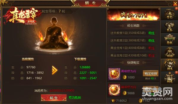 《真龙主宰》200级就能够开启转生玩法了,他可以通过增加玩家的攻击、防御、生命属性来使得角色的战力更高。而不仅仅只有属性加成,转生等级越高还可以去专属的地图打高级的boss,能够爆更好一点的装备。