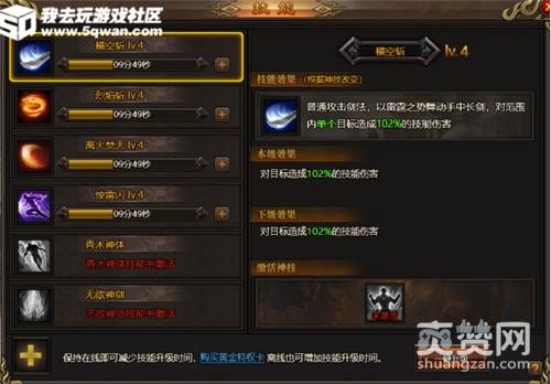 通过消耗神技技能书激活各个技能的神技,神技大幅增加技能伤害