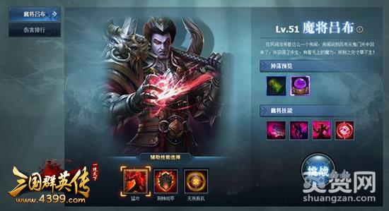 挑战魔将吕布前,可挑选一个辅助技能,此技能在与魔将战斗中产生强力辅助效果。