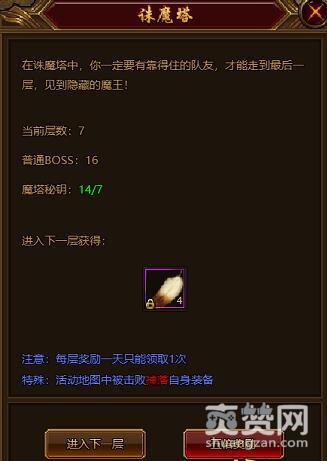 43u《裁决战歌》中的诛魔塔?在每天的14:00开启,诛魔塔一共有10层,进入下一层需要魔塔秘钥。魔塔秘钥可以通过魔塔里的BOSS掉落,当收集组否的秘钥后即可进入下一层,同时获得该层的奖励羽毛,层数越高奖励的羽毛就越多。