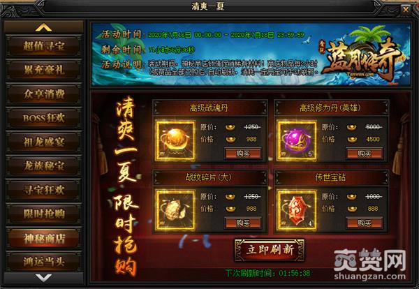 活动期间,神秘商店倾情促销稀有材料!商店物品每2小时自动刷新(或商品全部已购后),消耗一定元宝可手动刷新。