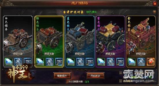 古时候,镖局的镖师通过帮人运送货物来赚取财富。而在《4399神王》中,押镖也是一项可以获取游戏资源和道具的途径哦。游戏中,通过押镖可以获取到钻石、兽魂、宝石或神石奖励。镖车品质越高奖励越丰厚!