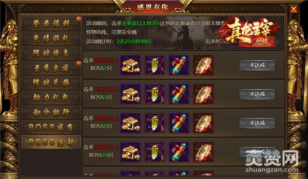 活动期间击杀主宰及以上BOSS达到指定数量即可领取奖励。