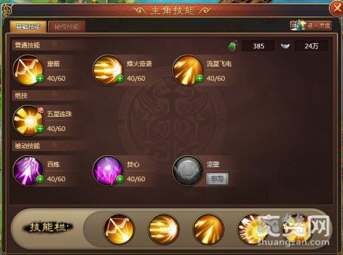通过点击43u《大唐盛世》主界面中的“技能”图标,大家可以打到主角技能界面。主角技能共分为两种,分别是“基础技能”和“秘传技能”,下面就来具体介绍一下。