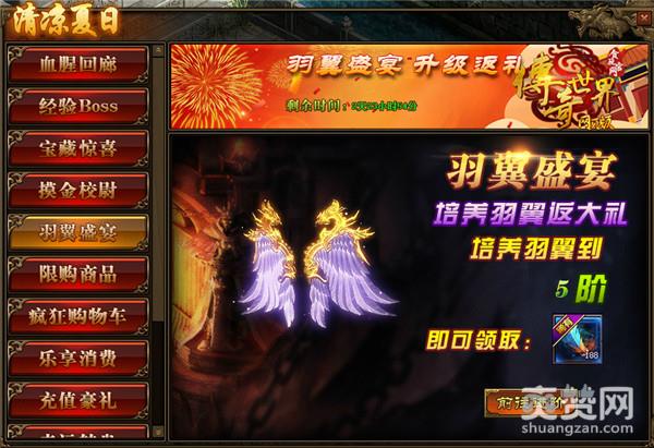 活动期间,玩家羽翼只需达到5级,即可领取一定数量的羽毛;每再提升一级的羽翼,将可再次免费领取羽毛。