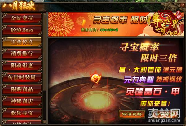 转眼间七月已经过去了,八月也已来临。同样还是盛暑的八月,《传奇世界网页版》同样也为大家准备了盛礼,寻宝奖励也更加丰厚,还有神秘典籍可以拿!
