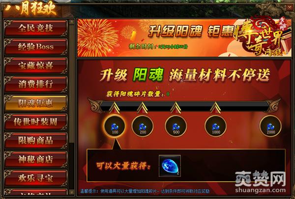 活动期间,玩家获得阳魂碎片数量,升级阳魂达到条件可领取对应阳魂碎片奖励。