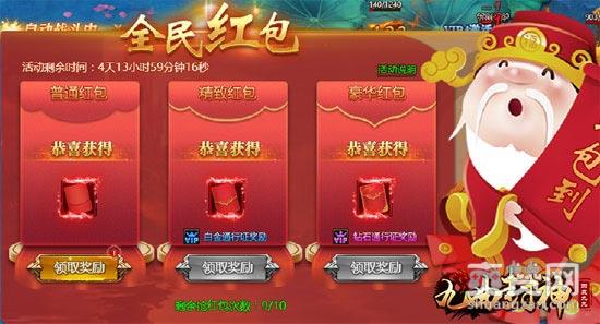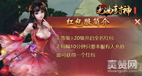 2.每隔10分钟只要本服有玩家充值,即可获得一个红包;