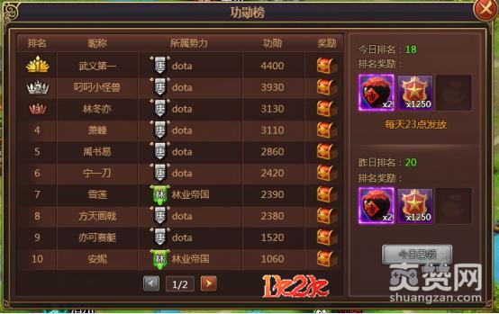 功勋排名奖励:系统将玩家每天的功勋排名,额外给玩家发放大量个人帮贡和结义酒,千万不能错过哟!