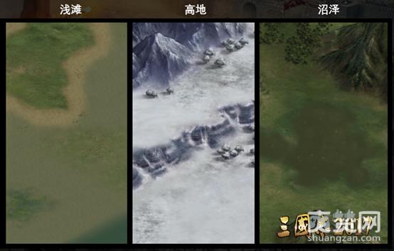 新地形中,有一部分会对指定势力的玩家城池产生增益效果,这部分地形就是:【沼泽】、【高地】、【浅滩】;