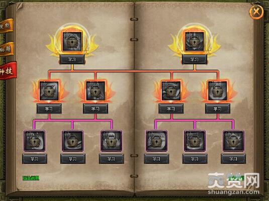 2.粉色神技和红色神技效果:对应的基础技能或秘籍技能的效果强化,金色技能为新增的主动技能
