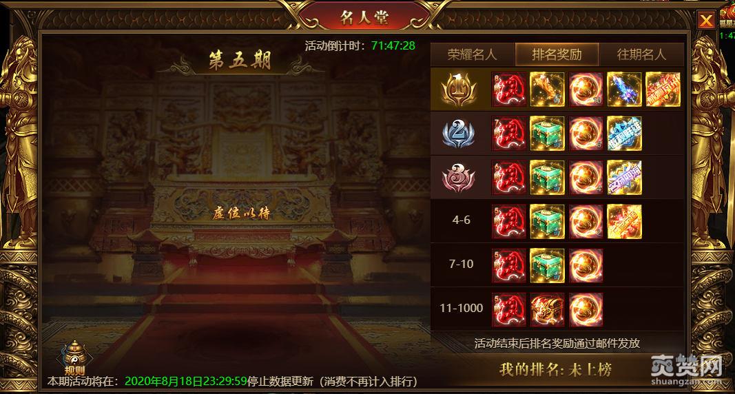 还有一个重磅消息:名人堂再次开启!活动期间充值消费传奇币金额达到指定数量后可参与名人堂排行,这次第一的宝座花落谁家,还请拭目以待!
