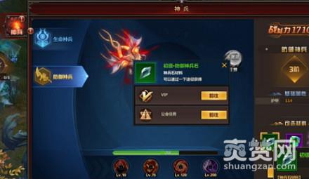 神兵可大幅度提高玩家战斗力,主要分为分为生命神兵、防御神兵、和攻击神兵。