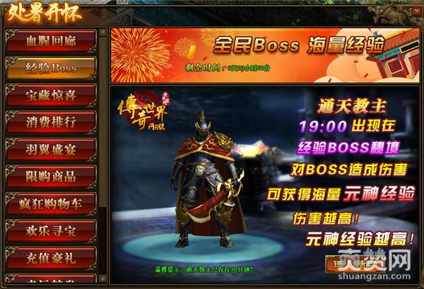 活动期间,每天19:00将在BOSS秘境中刷新BOSS,玩家可前往进行挑战;玩家对BOSS造成的伤害,将在活动结束后转换成元神经验并发放。温馨提示:可使用攻击药水,暴击药水的药品来获得更高的伤害,更多的经验。