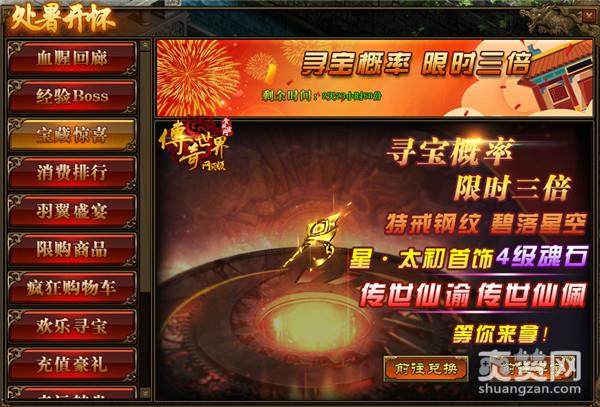 活动期间,玩家寻宝概率翻倍,极高几率获得星·太初首饰,特戒钢纹、仙元石、碧落星空,传世灵器、传世灵甲,高级天魂石、4级魂石,传世灵器·仙谕以及传世灵器·仙佩。错过一次就可能要等好久哦,想要拥有传世灵器的玩家一定不能错过!