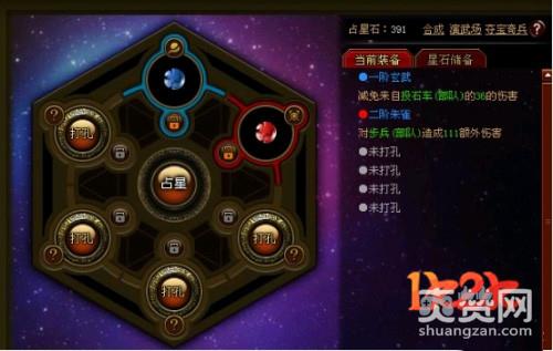 最后一个提升武将的系统叫做星盘,星盘这个玩法,大家可以将他看成是一个附魔的玩法,我们在游戏中获取的星石可以帮助我们来提升武将的一些特殊属性,这些特殊属性是针对武将所拥有的部队的,可以说非常给力,目前一个武将的孔位是六个,但是我们需要不断的使用金币进行打孔,而且不同的孔位需要的星石类型也是完全不同的,大家在游戏中需要注意获取相关的星石,同时低阶星石可以合成为高阶星石。