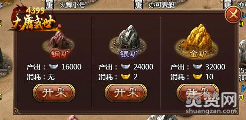 玩家可自行选择开采不同的矿,通过消耗一定元宝可获得更多的银币。
