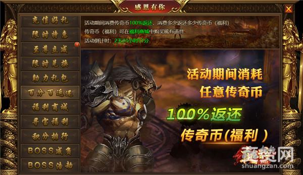 活动期间消费传奇币100%返还,消费多少返还多少传奇币(福利),此外,本次活动还有【双倍充值】,可在活动页面领取与充值金额等值的传奇币奖励。两个活动结合起来,简直不要太爽!