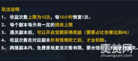 4. 收益次数在对应副本所有怪物都死亡后,才会扣除,可以放心挑战。