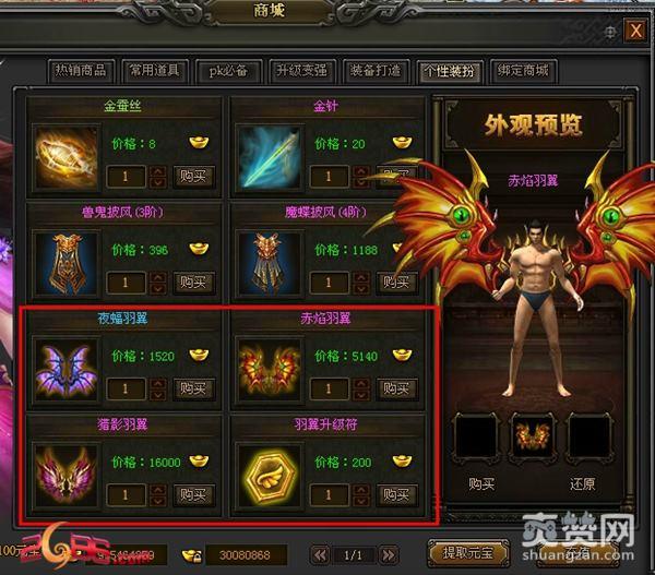 4)羽翼为装备部位,获得后可装备在角色身上