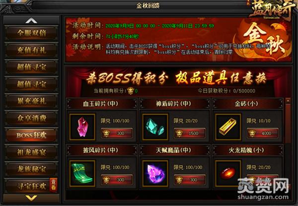 活动期间内,击杀BOSS获得“boss积分”,“boss积分”可用于兑换材料,每种材料均有兑换次数限制,“boss积分”在活动结束后,清除归零。