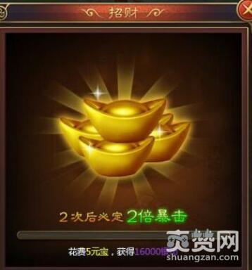 大家可花费元宝获得银币,随着招财次数递增,所花费的元宝也会相应增加,当招财次数达到上限时会出现“今日招财次数达到上限”提示。大家可通过升级VIP等级来增加招财次数,VIP等级越高,可招财次数也越高。