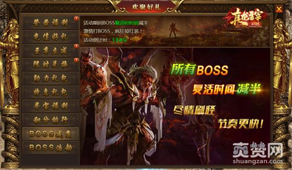 BOSS复活时间减半(跨服BOSS除外)。击杀1500级以上的boss、转生boss可加积分。获得积分排名后更有额外奖励~不止于此,活动期间击杀创世神达到指定数量,即可领取丰厚奖励。