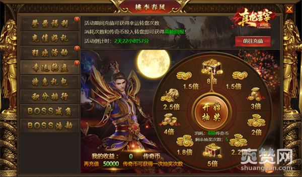 活动期间充值可获得幸运转盘次数,消耗转盘次数和传奇币投入转盘可获得高额回报。投资1000传奇币,最高可获得8000传奇币,最低可获得1800传奇币,精彩多多,福利满满~